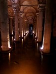 We go to the underground cistern, dating from the 5th C AD. A watery, disappearing underground palace, dimly lit with an amber glow. Sonorously dripping. Golden lire shimm